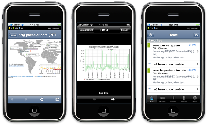 - The web interface of the PRTG server must be accessible for the iPhone over VPN, 3G, EDGE, GPRS, or WiFi/WLAN